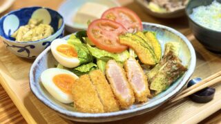 春が旬のタケノコをまさかの唐揚げに!ラタトゥイユ・牛豚ロース焼き・ロメインレタスのマヨネーズ炒めが並ぶ旦那キッチンの春献立。合わせたカリフォルニア産ジンファンデルが食卓をビストロに変えてくれました🍷簡単レシピも紹介しています。